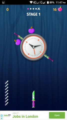 2. 积累苹果:在目标旁边会出现苹果,玩家通过将飞刀穿过苹果来获得更多刀具类型,丰富游戏内容。